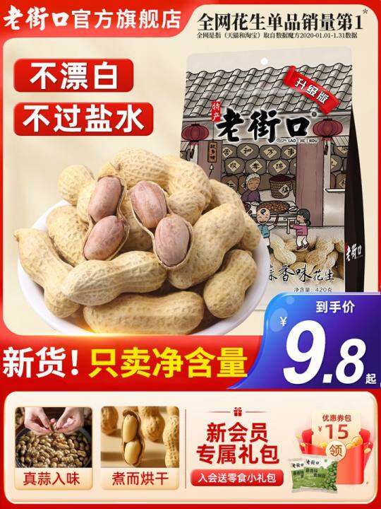 老街口蒜香奶香花生420gx4袋新货水煮花生米晒干带壳零食炒货年货