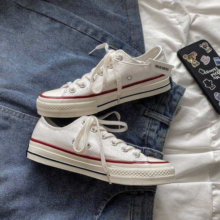 白色帆布鞋女ulzzang百搭低帮小白鞋女2025新款学生春季复古女鞋