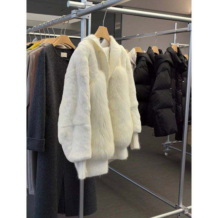 告别款7折 毛+狐狸毛!长貉毛绒针织拼接连帽皮草外套女<NWZJ092