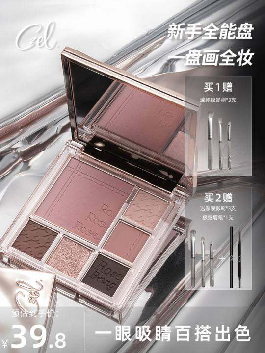 CZEL/绔姿水波纹眼影盘灰粉色渐变腮红盘一体日常通勤哑光大地色