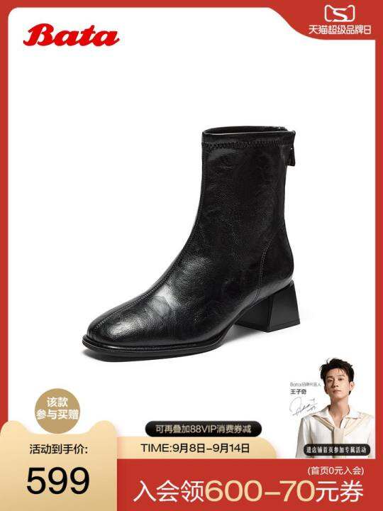 Bata弹力瘦瘦靴女2025冬季商场新款通勤百搭粗跟时装靴AAH40DZ5