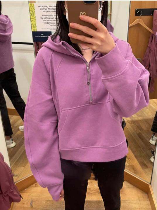 lululemon Scuba oversized 1/2 Zip Hoodie女运动内加绒宽松卫衣