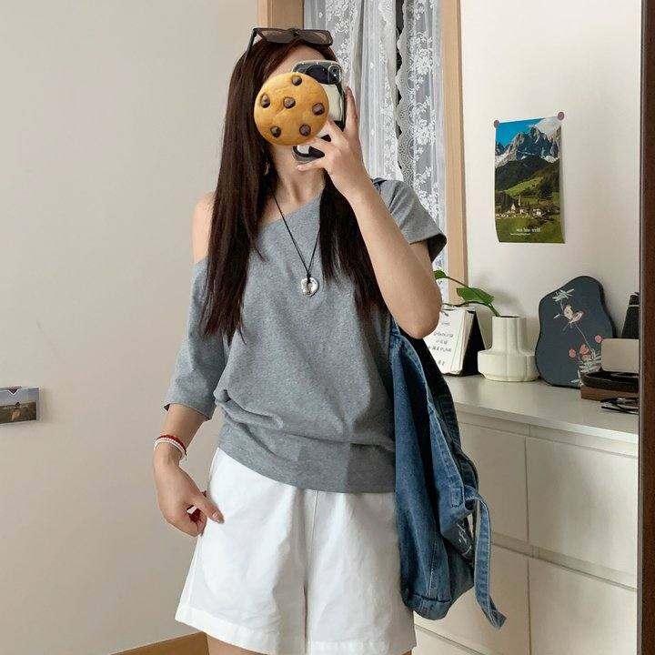 夏日bi备~~斜肩/一字肩上衣女短袖t恤上衣