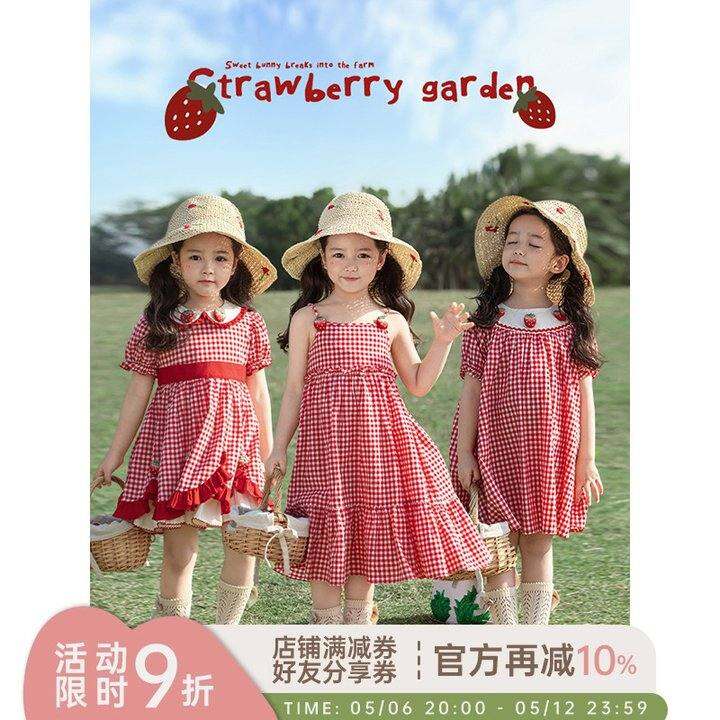 幼悠女童红白格莓丽佳人系列夏季浪漫洛丽塔风草莓立体玩偶连衣裙