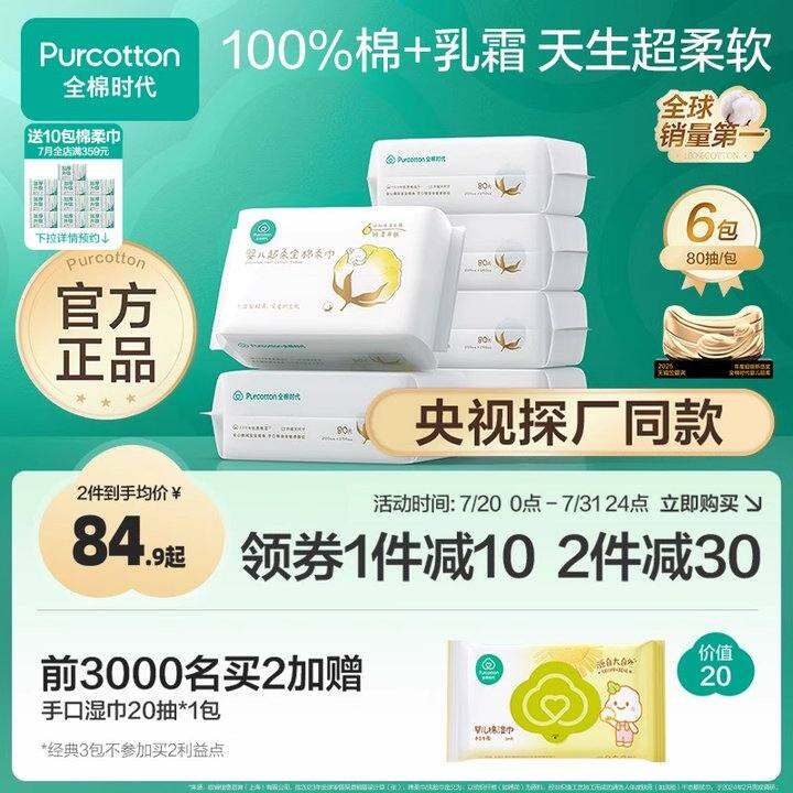 全棉时代婴儿棉柔巾专用纯棉超柔乳霜新生儿童宝宝洗脸巾干 干湿两用