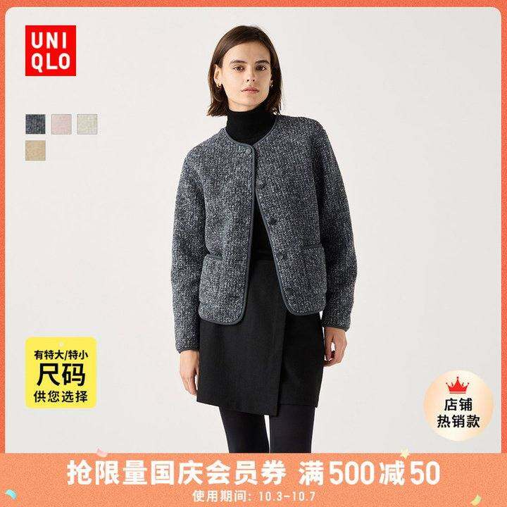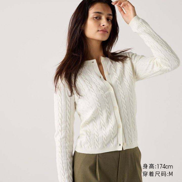 优衣库女装纽花圆领针织开衫长袖外套休闲时尚百搭空调衫471612