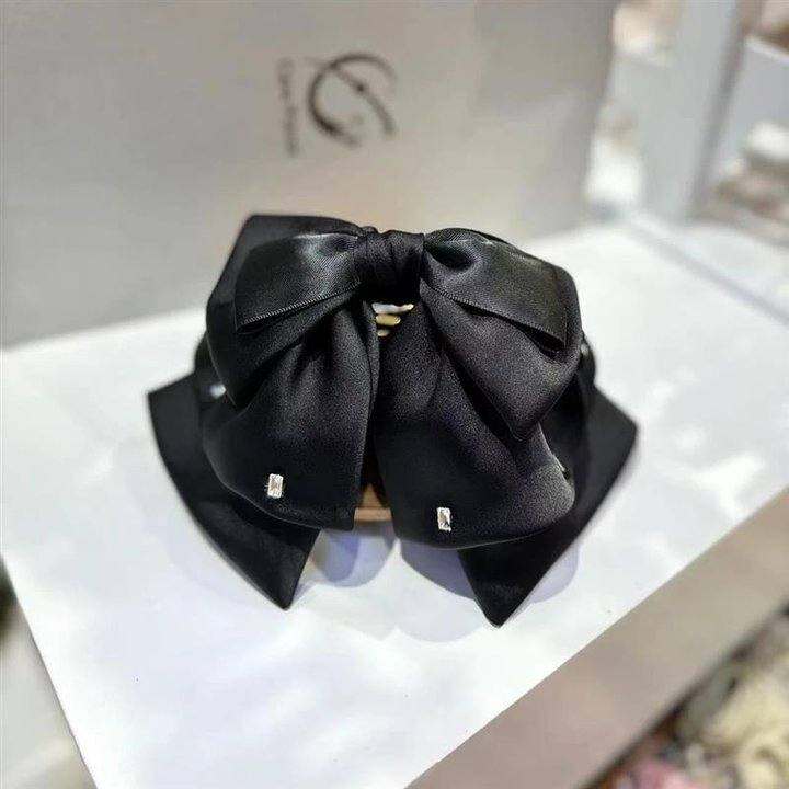 法式高级感缎面水钻折叠蝴蝶结马尾夹欧根纱后脑勺半扎发抓夹发夹