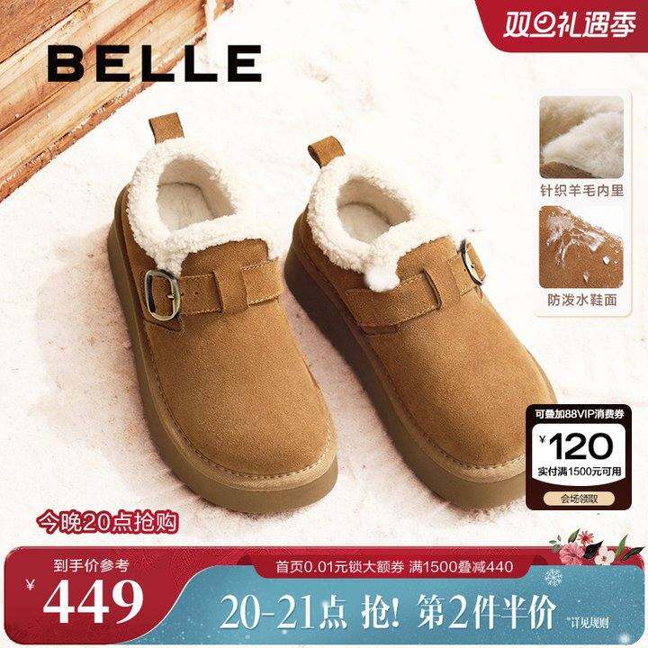 吴千语同款百丽雪顶咖啡全包勃肯鞋女加绒棉鞋雪地靴D1V1DDM4预