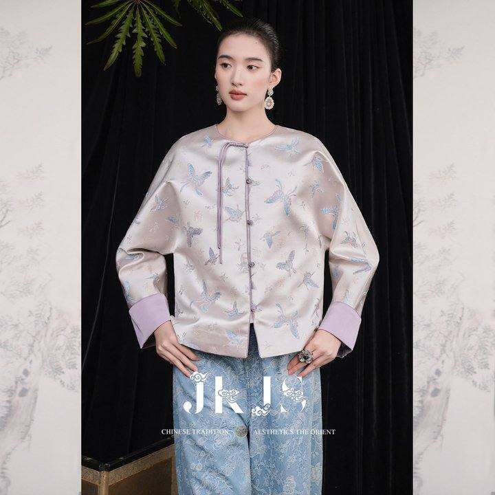 JKJS【蝶梦悠】新中式蝴蝶提花外套遮肉显瘦高级感国风盘扣上衣