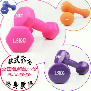 包邮彩色磨砂光面浸塑1.5kg哑铃男女士郑多燕减肥健身跳操瘦臂