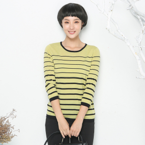 女巫2014秋装新款女士针织上衣 羊毛条纹针织衫七分袖套头毛衣