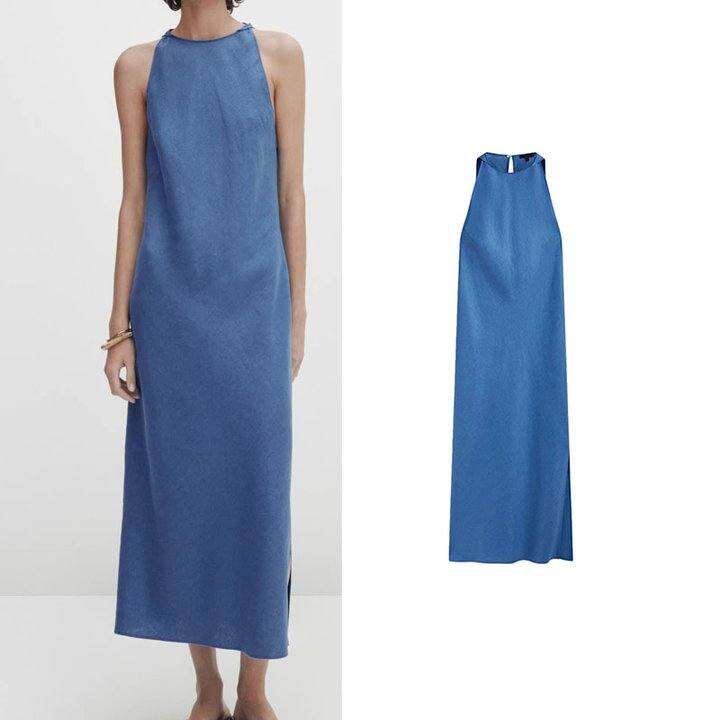 ZADATA多巴胺色彩气质舒适纯亚麻无袖吊带连衣裙 6795120