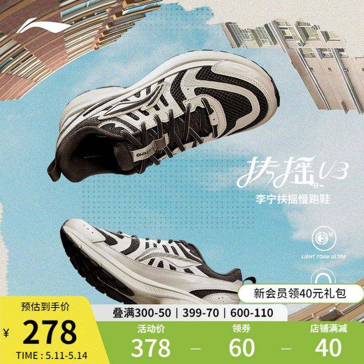 李宁扶摇1.0 V3 | 跑步鞋女鞋透气轻便缓震跑鞋复古低帮运动鞋女