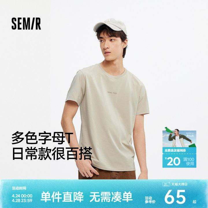 [商场同款]森马短袖T恤男修身百搭2025夏季新款圆领针织上衣印花