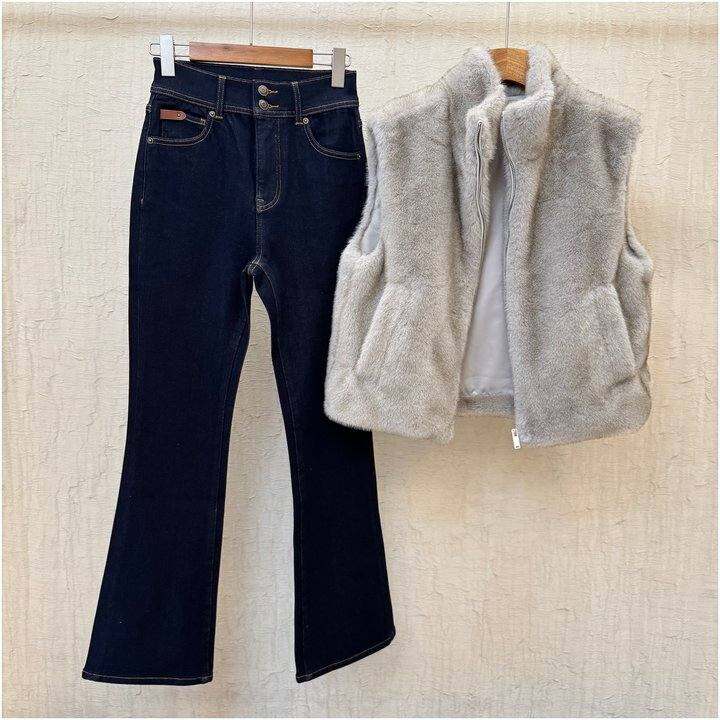 深蓝色大长腿~环保原色不掉色~意大利进口面料薄绒加绒喇叭裤