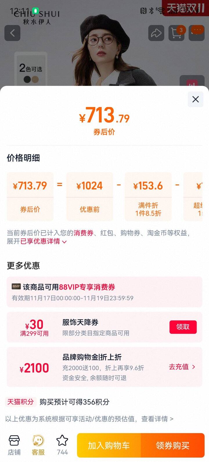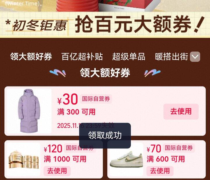 店铺300-55凑单,叠加淘礼金,限时超级补贴和联盟补贴,淘金币店外凑美妆券1000-140