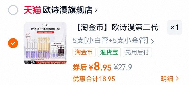 欧诗漫第二代安心小白管5支+胶原小金管5支