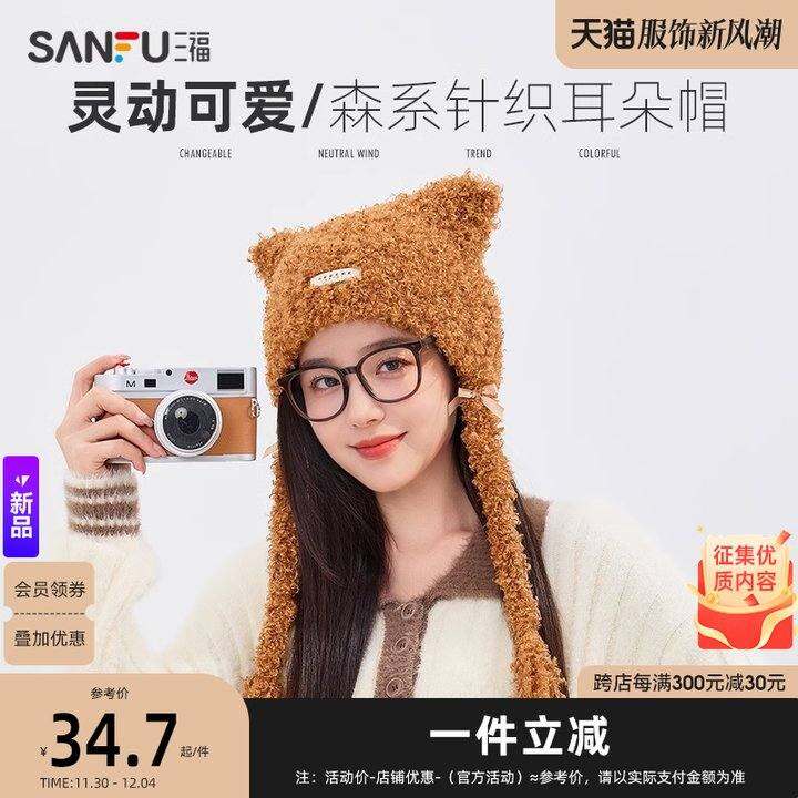 三福基础耳朵帽西瓜帽 时尚休闲服饰配件配饰帽子837378