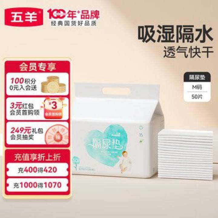 五羊(FIVERAMS)婴儿隔尿垫一次性宝宝纸尿垫护理垫新生儿隔尿垫巾M码50片