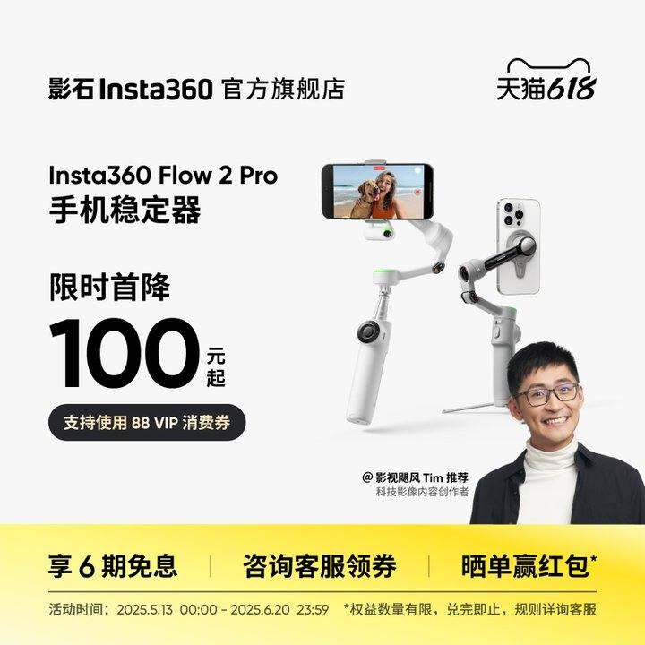 【影视飓风推荐】影石Insta360 Flow 2 Pro手机稳定器手持云台 三轴增稳智能跟拍防抖vlog视频直播便携可折叠