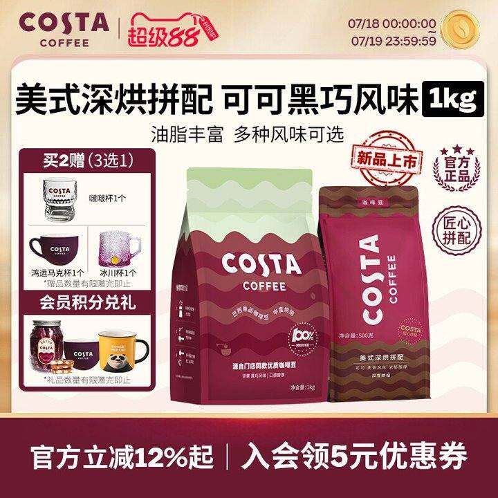 COSTA咖啡豆阿拉比卡意式拼配巴西单品进口精品手冲咖啡豆深烘1KG