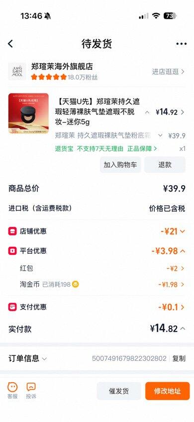 【天喵U先】郑瑄茉持久遮瑕轻薄裸肤气垫遮瑕不脱妆-迷你5g