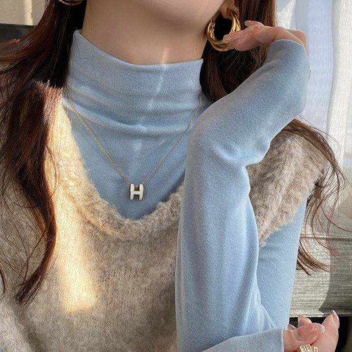 蓝色内搭磨毛半高领打底衫女装2025秋冬季新款加绒高级感德绒上衣