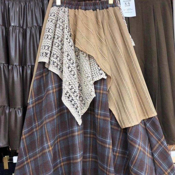 不规则A字格子长裙2025初秋新款女拼接半身裙复古日系小众设计感