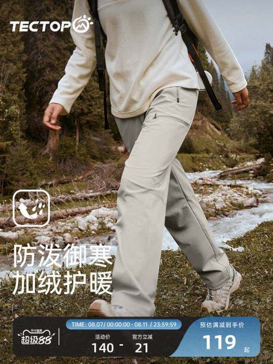 探拓户外加绒软壳裤男女款秋冬保暖长裤防风防泼水登山徒步冲锋裤