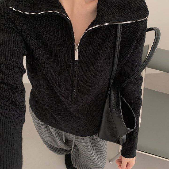 半拉链精纺大翻领!老钱风精纺全羊毛拉链针织衫女上衣