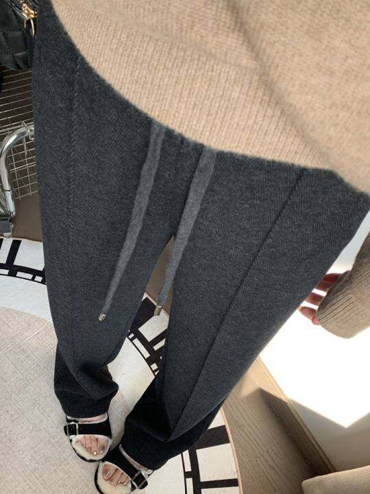 灰色羊毛呢直筒裤女秋冬新款加绒窄版垂感显瘦西装休闲阔腿长裤厚