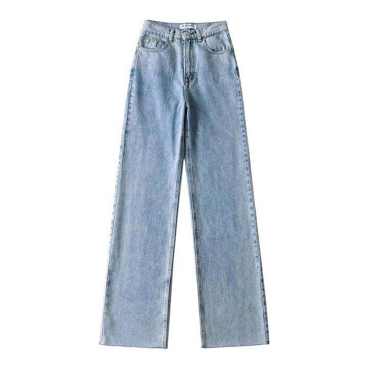 子路潮品 欧美风新款宽松高腰显瘦毛边阔腿拖地牛仔裤长裤女
