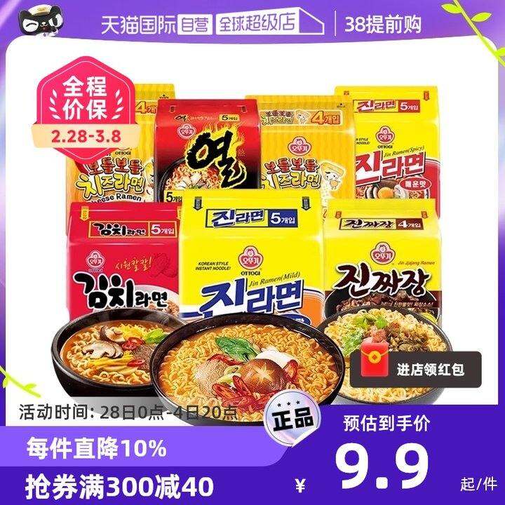 【自营】韩国进口不倒翁金拉面辣味真海鲜拉面方便面泡面袋装速食