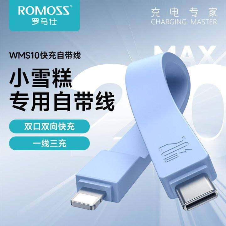 罗马仕磁吸无线充电宝小雪糕WMS10专用数据线适用苹果安卓一线三充