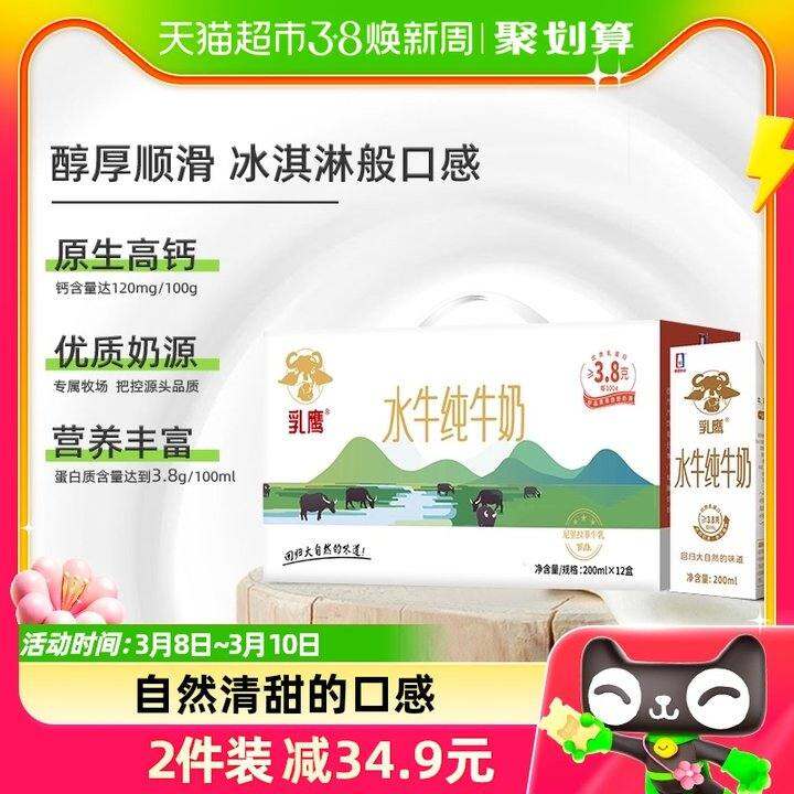 南国乳业纯奶水牛纯牛奶200mlx12盒儿童学生营养早餐纯奶整箱装