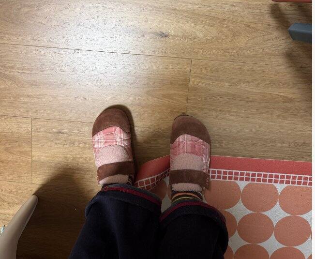 我的上班小棉鞋到了 底非常软和 最近天气热的又可以穿秋装 今天就穿羽绒服 我的自然卷只有去店里吹才能吹直的 但染了浅色感觉人都精神了