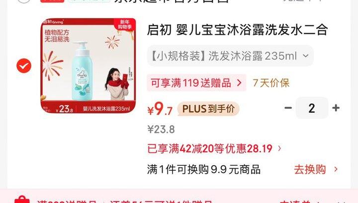 2件启初 婴儿宝宝沐浴露洗发水二合一 温和无泪易冲洗 235ml