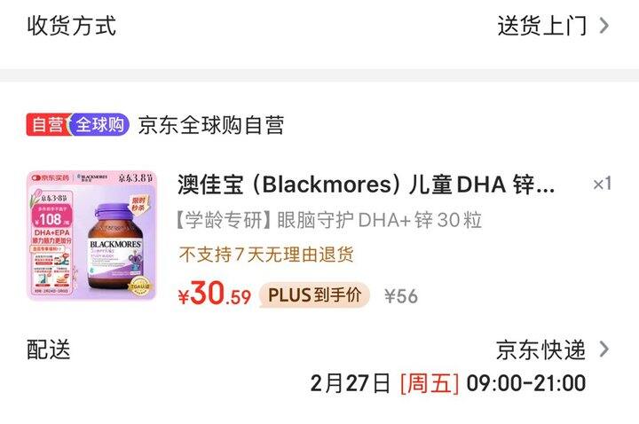澳佳宝(Blackmores)儿童DHA 锌 铁 维生素 婴幼儿青少年儿童补脑增强记忆力 30粒https://u.jd.com/l6X0zr4