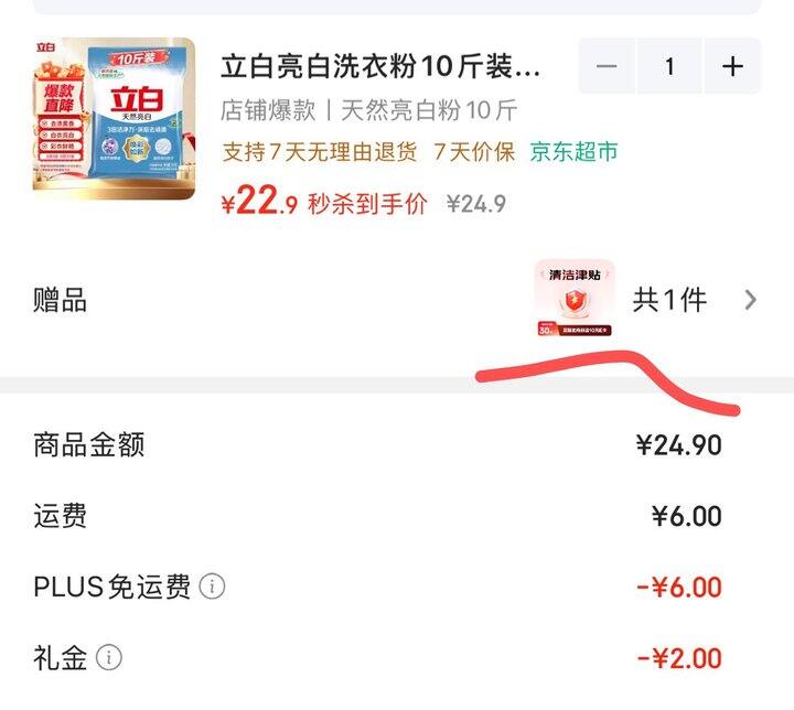 叠加2首单拍下22.9返10清洁津贴(E卡)立白亮白洗衣粉10斤装