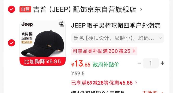 叠加商品下政府补贴9折券拍下13
