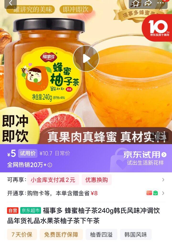 试用5包邮福事多 蜂蜜柚子茶240g韩氏风味冲调饮品