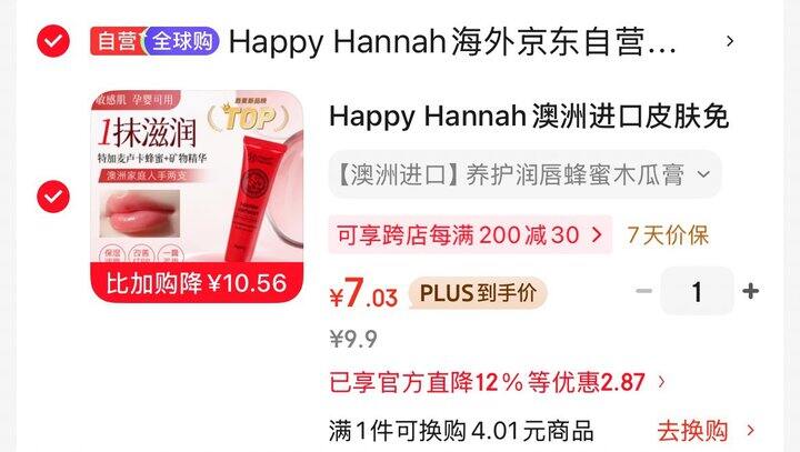 拍下7 Happy Hannah澳洲进口皮肤免疫蜂蜜木瓜膏敏肌消炎蚊虫叮咬润唇母婴红屁屁