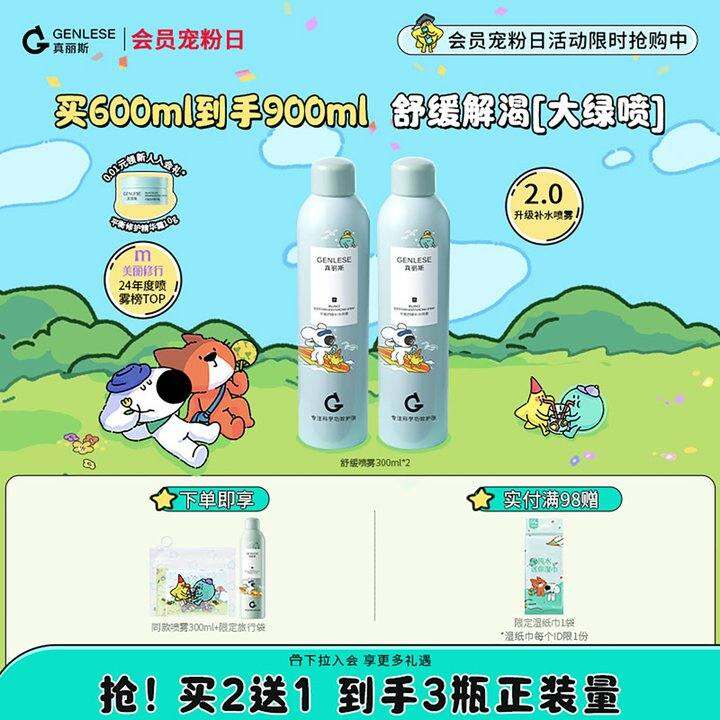 真丽斯舒缓大绿喷2.0补水喷雾保湿水光爽肤水化妆水湿敷妆前正品