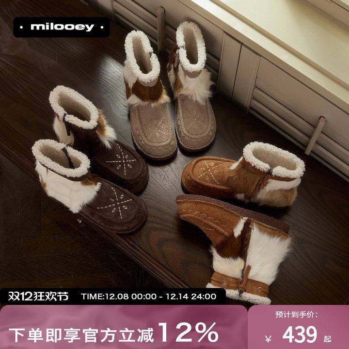 迷失麋鹿【游牧小暖炉】厚底加绒加厚中筒雪地靴一脚蹬保暖棉鞋女