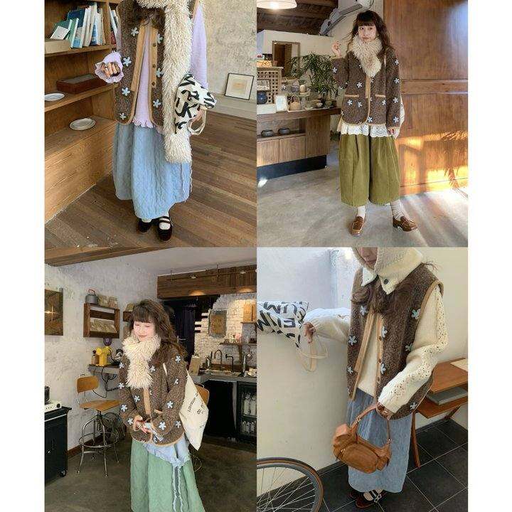 yangziloo 25AW“斑驳光影”拿铁杂色毛呢 毛线绣 夹棉马甲短外套