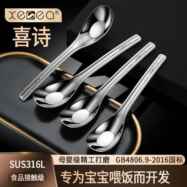 喜诗316不锈钢元宝勺家用调羹宝宝吃饭汤匙304元宝汤勺儿童勺小勺