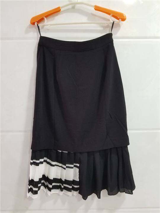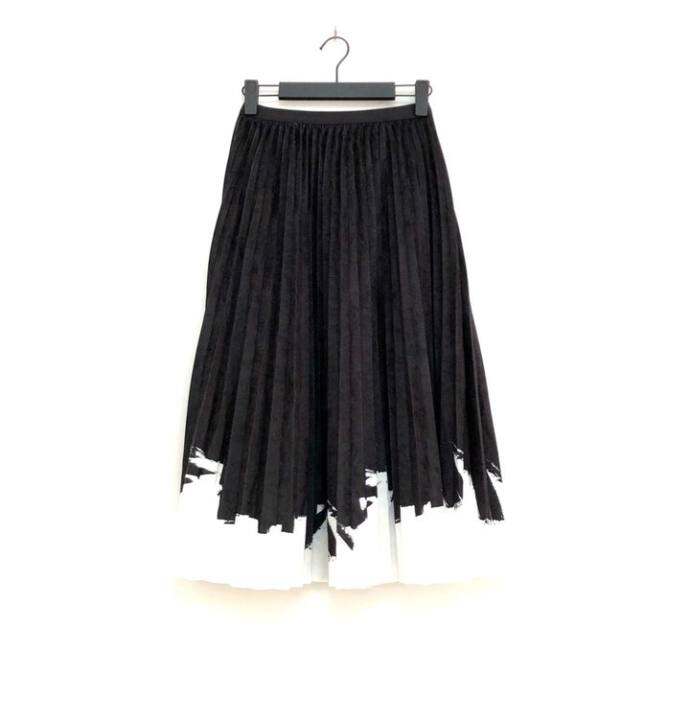 圣迪折扣女装 黑白撞色拼接松紧腰半身裙高腰百褶裙长裙