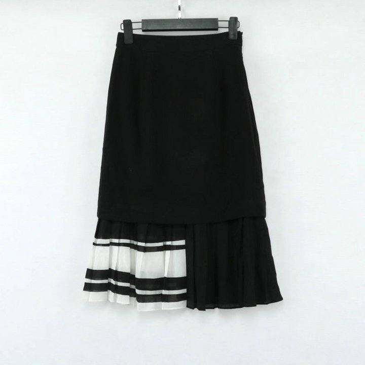 太平@@黑白撞色半身裙 裙摆雪纺百褶 双层材质