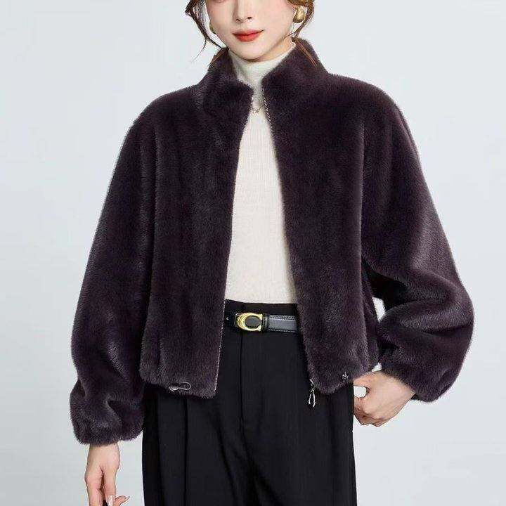 皮毛一体仿水貂皮草短款大衣外套厚款秋冬高端小个子休闲上衣女潮