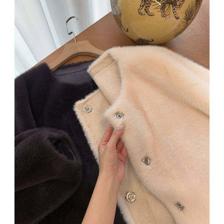 南极罗兰貂!水貂绒环保皮草外套女皮毛一体圆领宽松灯笼袖大衣
